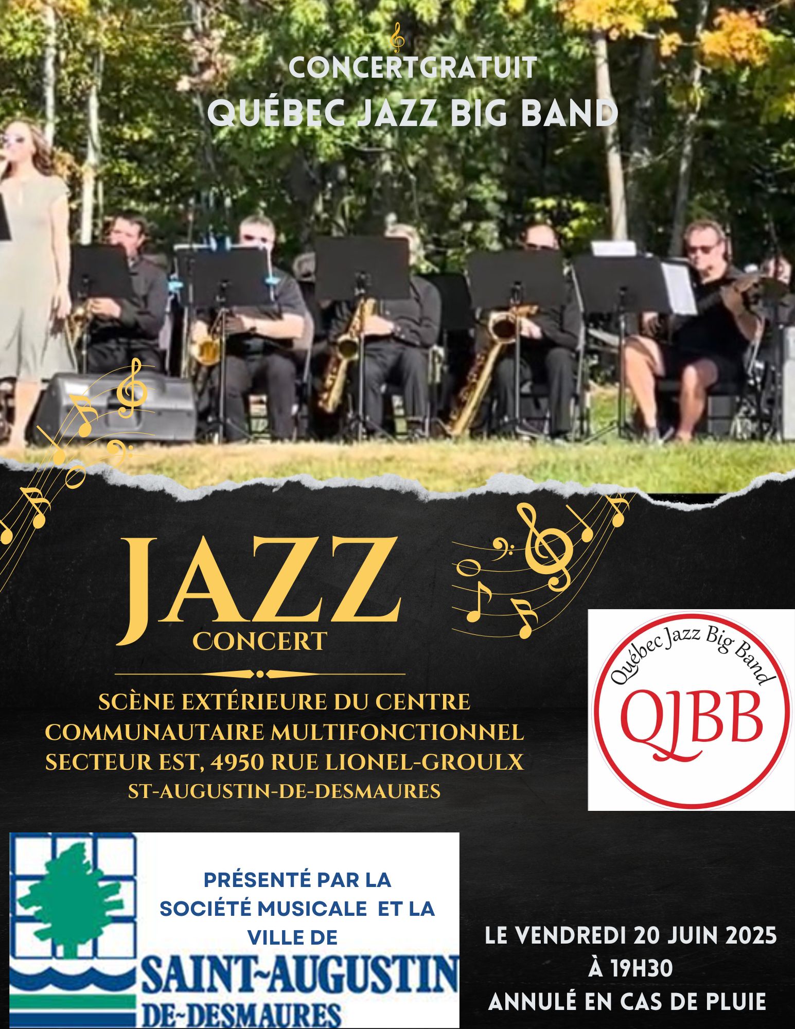 Le Québec Jazz Big Band est un ensemble de jazz composé de 18 musiciens et de la chanteuse, Eve-Marie Laflamme. Eve-Marie est diplômée d’une maîtrise en interprétation Jazz de l’Université Laval. Sa voix, agile et authentique, vous fera voyager dans l’univers coloré du swing.